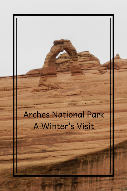 We pretty much had the park to ourselves, the day we visited Arches. You can see from our photos we didn’t see much of the sun though. And, at the higher elevations we hiked in snow flurries, but we decided it just added to the overall experience. We enjoyed spans of up to an hour without seeing another car or human being. It made it well-worth bundling up for the experience. After all, how many people can say they went hiking, in Arches National Park, in the snow?!