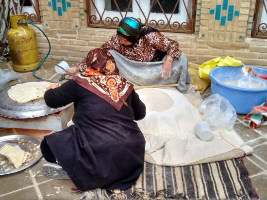 In Isfahan, within the grounds of the Chehel Sotoun Palace, sat these two strong women baking what else? Life’s bread. The strength of these women to be able to sit there for hours rolling out and baking bread was humbling to see.
