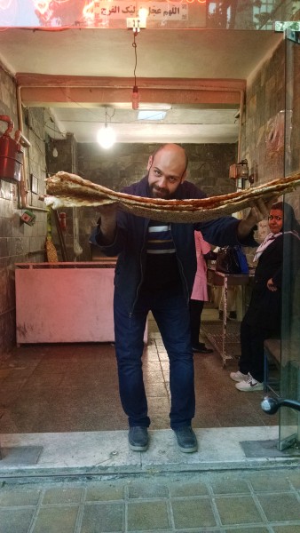 While on our 5-day road trip across Iran, Abi and I happened upon a street bakery in Shiraz. We waited for the bread to find its way out of the oven and into our eagerly awaiting hands so we could tear off a piece, wrap it around a chunk of Feta Cheese and inhale. Man it was good!